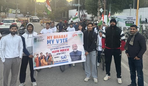 उदयपुर, 25 जनवरी। मेरा युवा भारत (माय भारत) युवा कार्यक्रम एवं खेल मंत्रालय, भारत सरकार के तत्वावधान में राष्ट्रीय मतदाता दिवस के अवसर पर रविवार को उदयपुर में फतेहसागर झील की पाल पर ‘संडे ऑन साइकिल’ कार्यक्रम का सफल आयोजन किया गया। यह कार्यक्रम स्पोर्ट्स अथॉरिटी ऑफ इंडिया (एसएआई) के प्रशिक्षु खिलाड़ियों एवं विद्यार्थियों के सहयोग से आयोजित हुआ।