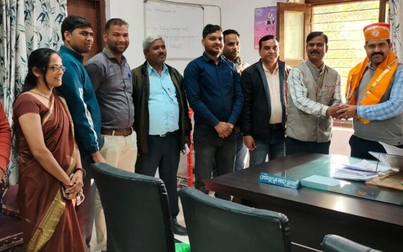 राजस्थान शिक्षक संघ (अंबेडकर ) के प्रदेश शिक्षक नेता सुरेश कुमार देशबंधु के नेतृत्व में प्रतिनिधि मंडल द्वारा उपखंड अधिकारी का नव पदभार तथा कार्यभार ग्रहण करने पर मेवाड़ी पगड़ी व उपरना पहनाकर स्वागत किया। इसी क्रम में प्रतिनिधि मंडल द्वारा तहसीलदार डॉ. रमेशचंद्र वढेरा को प्रार्थना पत्र देकर राजकीय प्राथमिक विद्यालय उंखलिया की मंगरी के विद्यालय के लिए बाउंड्री और रास्ता चैड़ा करने के लिए आग्रह किया गया। इस दौरान माधवलाल गमेती,गुलाबचंद्र वर्मा, गौरीशंकर खटीक,रमेशचंद्र मेघवाल,फतेहलाल यादव,सुनीलचंद्र अट्टु,राहुल मौर्य, सुनील महावर,गोविंद लाल बैरवा, रतनसिंह,वेणीराम,सरोज बडगुर्जर, राजेश कुमार शर्मा,भेराराम सिणधरी,कुपाराम ढाका,उमेद खान आदि कार्यकारिणी के सदस्य उपस्थित रहे।