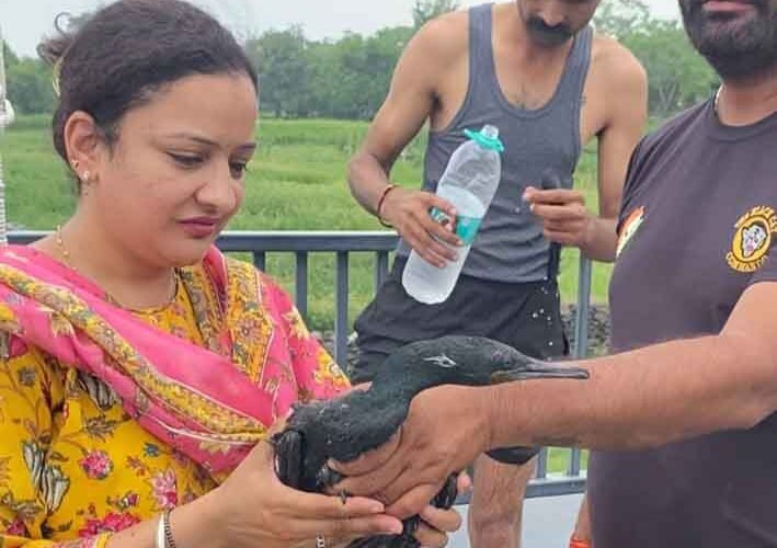 उदय सागर में जाल में फसी कोको  नाम की जलकाक को सिविल डिफेन्स की मदद से एनिमल प्रोटेक्शन सोसाइटी ने किया आज़ाद