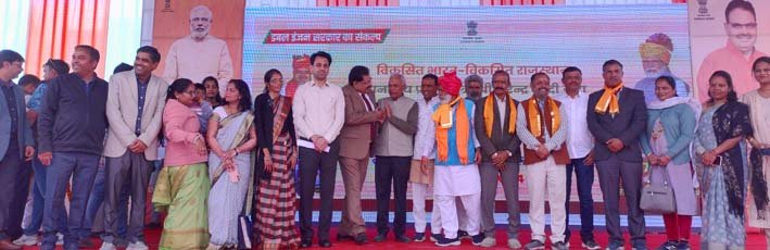 आत्मनिर्भर और विकसित भारत का संकल्प होगा साकार : कार्यक्रम को संबोधित करते हुए उदयपुर शहर विधायक ताराचंद जैन ने कहा कि प्रधानमंत्री श्री नरेंद्र मोदी एवं मुख्यमंत्री श्री भजनलाल शर्मा के नेतृत्व में डबल इंजन की सरकार से राजस्थान और देश तेजी से आगे बढ़ रहे हैं। उदयपुर ग्रामीण विधायक फूलसिंह मीणा ने कहा कि देश आत्मनिर्भर बनने की दिशा में तेजी से कदम बढ़ा रहा है। केंद्र और राज्य सरकार की परियोजनाओं से उदयपुर भी तेजी से आगे बढ़ रहा है। दोनों विधायकों ने कार्यक्रम में भागीदारी के लिए सभी लोगों का आभार व्यक्त किया। प्रारंभ में जनप्रतिनिधियों ने दीप प्रज्जवलित कर कार्यक्रम का शुभारंभ किया। स्कूली बालिकाओं और स्थानीय लोक कलाकारों ने प्रस्तुतियां दी। पीएम स्वनिधि योजना के लाभार्थी को 50 हजार रूपए की ऋण राशि का चेक सौंपा। कार्यक्रम में संभागीय आयुक्त राजेंद्र भट्ट, जिला कलक्टर अरविन्द पोसवाल, एडीएम सिटी राजीव द्विवेदी, नगर निगम आयुक्त राम प्रकाश, गिर्वा एसडीएम रिया डाबी, सीईओ जिला परिषद कीर्ति राठौड़, युडीए सचिव राजेश जोशी, एलडीएम राजेश जैन, नगर निगम महापौर गोविन्दसिंह टांक, उप महापौर पारस सिंघवी, राजसमंद पूर्व विधायक बंशीलाल खटीक, समाजसेवी रविन्द्र श्रीमाली सहित बड़ी संख्या में जनप्रतिनिधिगण, सभी विभागों के अधिकारी-कर्मचारी तथा हजारों की संख्या में लाभार्थी व आमजन उपस्थित रहे।