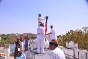 तत्वाधान में प्रभु महाकालेश्वर की प्रातः 6.30 बजे मंगला आरती व पूजा के बाद 10.30 प्रदोष महापूजा, भगवान भोलेनाथ का विशेष श्रृंगार, भोग, ध्वजपताकाओं का पूजन व आरती की की गई। इसके बाद अभिजित मुर्हत 12.15 बजे श्रीगणपति, श्री भैरव, ओगडी माई की धूणी व भोलेनाथजी के समाधि पर ध्वजा चढाई गई।