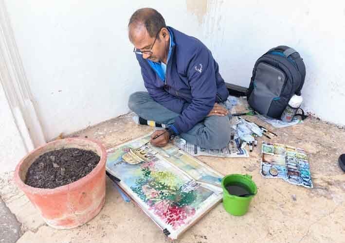 उदयपुर, 12 जनवरी 2024। पश्चिम क्षेत्र सांस्कृतिक केन्द्र उदयपुर की ओर से तीन दिवसीय प्लेन एयर वाटर कलर आर्ट केम्प – सिटी ऑफ लेक्स के अंतिम दिन शुक्रवार को सहेलियों की बाड़ी के सौन्दर्य को पेपर पर उकेरा। शाम को शिल्पग्राम परिसर में कलाकारों ने कलाकृतियां उकेरी।