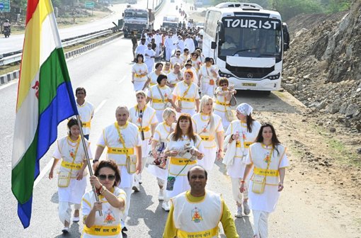 फत्तावत ने बताया कि आचार्य महाश्रमण के विहार में आज विदेश की धरती रशिया से प्रेक्षाध्यान शिविर में सहभागी बने लगभग 32 शिविर संभागी भी साथ चले। एकरूपता की दृष्टि से एक समान यूनिफार्म में जैन ध्वज पकड़े विदेशी शिविरार्थी का नजारा देखने लायक बन रहा था।