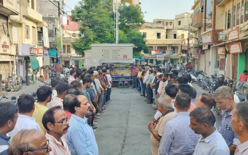 उदयपुर। श्री अन्नपूर्णा माताजी धर्मोत्सव समारोह समिति द्वारा आज घण्टाघर पर समिति के सदस्य, व्यापारीगण, एवं क्षेत्रवासियों ने मिलकर अहमदाबाद में हुए विमान हादसे में दिवंगतों के लिए मौन धारण कर उनको श्रद्धांजलि अर्पित की गई ।