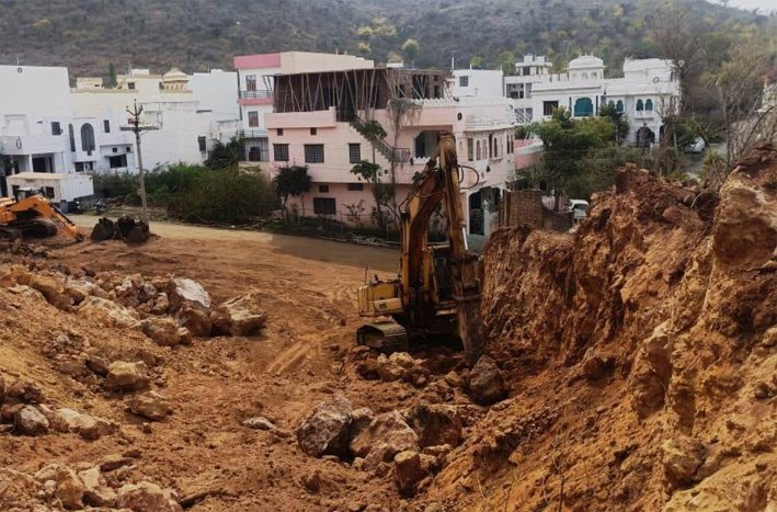 यूडीए सचिव राजेश जोशी के निर्देशानुसार मंगलवार को प्राधिकरण भूमि अवाप्ति अधिकारी मनसुख डामोर के दल द्वारा एक गांव में पहाड़ी खुदाई की शिकायत पर कार्यवाही की गई। डामोर ने बताया कि उदयपुर विकास प्राधिकरण के क्षेत्राधिकार में स्थित राजस्व ग्राम रेबारियों का गुड़ा आराजी संख्या 683 में आवंटित भूमि जो मौके पर पहाड़ी भूमि है, पर 3 पोकलेन एवं जेसीबी मशीन द्वारा खुदाई का कार्य किया जा रहा था जिसे मौके रूकवाया गया एवं मशीनों को सीज किया गया। मौके पर बिना स्वीकृति के किसी भी प्रकार की खुदाई एवं निर्माण नहीं करने के लिए पाबन्द किया गया। इस कार्यवाही के दौरान मौके पर राजस्व निरीक्षक राजेश मेहता प्राधिकरण होमगार्ड जाब्ता द्वारा की गई।