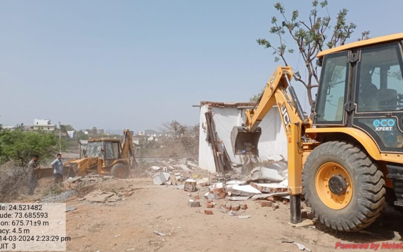 उदयपुर 14 मार्च। उदयपुर विकास प्राधिकरण (यूडीए) ने गुरुवार को अवैध कब्जों के खिलाफ कार्रवाई करते हुए तीन अलग-अलग स्थान से करीब 30 करोड़ रुपए कीमत की जमीनों से पक्के निर्माण, बाउंड्री वॉल ध्वस्त कर अतिक्रमण मुक्त करवाई।