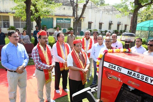 उदयपुर, 01 अप्रेल, 2026। महाराणा प्रताप कृषि एवं प्रौद्योगिकी विश्वविद्यालय, उदयपुर द्वारा प्रसार शिक्षा निदेशालय में प्रौद्योगिकी एवं अभियांत्रिकी महाविद्यालय, उदयपुर द्वारा क्रय किये ट्रेक्टरों का लोकार्पण आज 01 अप्रेल, 2026 को किया गया। उक्त चारो ट्रेक्टर विश्वविद्यालय के कृषि विज्ञान केन्द्र, भीलवाड़ा, चित्तौड़गढ़, राजसमन्द एवं प्रौद्योगिकी एवं अभियांत्रिकी महाविद्यालय हेतु क्रय किये गये। इन नवीन ट्रेक्टरों का लोकार्पण कुलगुरू, डॉ. प्रताप सिंह, मप्रकृप्रौविवि, उदयपुर द्वारा किया गया। कुलगुरू महोदय ने बताया कि कृषि विज्ञान केन्द्रों के ट्रेक्टर हेतु बजट आवंटन भारतीय कृषि अनुसंधान परिषद्, नई दिल्ली द्वारा किया गया साथ ही बताया कि यह ट्रेक्टर कृषि विज्ञान केन्द्रों के प्रशिक्षणात्मक फार्म पर फसल बीज उत्पादन एवं फार्म के विकास को और अधिक सुदृढ़ एवं प्रभावी बनाने में अत्यन्त सहायक सिद्ध होगा। इस लोकार्पण समारोह में कुलगुरू महोदय के साथ कुलसचिव, श्री अशोक कुमार, निदेशक डॉ. आर.एल. सोनी, प्रसार शिक्षा निदेशालय, भु-सम्पत्ति अधिकारी श्रीमती व्यास, अधिष्ठाता डॉ. मनोज कुमार मेहला, निदेशक अनुसंधान डॉ. अरविन्द वर्मा, कृषि विज्ञान केन्द्रों के वरिष्ठ वैज्ञानिक एवं अध्यक्ष, डॉ. रतन लाल सोलंकी, डॉ. सी.एम. यादव, डॉ. पी.सी. रेगर के साथ सम्बन्धित कर्मचारी व प्रसार शिक्षा निदेशालय के प्रोफेसर डॉ. राजीव बैराठी, डॉ. योगेश कनोजिया, प्रौद्योगिकी एवं अभियांत्रिकी महाविद्यालय के अधिष्ठाता एवं फार्म मशीनरी के समन्वयक डॉ. एस.एस. मीणा आदि उपस्थित थे।