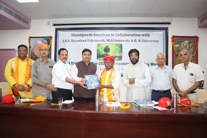 उदयपुर, 01 जुन /  प्राणी मात्र के लिए पर्यावरण संकट मानव जनित ही है, जिसके लिए हम सभी जिम्मेदार है, जिसे मानव को ही अपनी जागरूकता और निस्वार्थ प्रयासों से संकटमोचन का कार्य प्रकृति सौंदर्य की दिशा में करना होगा। पर्यावरण शुद्धिकरण एवं प्रदूषण को रोकने के लिए देश के विभिन्न वैज्ञानिक विभिन्न दिशा में प्रयासरत और  क्रियाशील,  लेकिन जब तक मानव स्वयं जागरूक और पर्यावरण के प्रति संवेदनशील नहीं होगा तब तक इसका उपचार संभव नहीं है। मानव को वर्तमान संदर्भ में पौधारोपण और प्राकृतिक सौंदर्य की दिशा में संपूर्ण शहर या राज्य की चिंता न कर अपने आस पास के सीमित क्षेत्र को विकसित करने का संकल्प लेकर अपने क्षेत्र में पूर्ण मनोबल से प्रयासरत होकर मानव कल्याण की दिशा में पर्यावरण को शुद्ध परिष्कृत करने का संकल्प लेना आवश्यक है, उक्त विचार शनिवार को विश्व पर्यावरण दिवस पर शांति पीठ संस्थान, जनार्दनराय नागर राजस्थान विद्यापीठ डीम्ड टू बी विवि, मोहन लाल सुखाड़िया विवि एवं भूपाल नोबल्स विवि के संयुक्त तत्वावधान में विद्यापीठ के प्रतापनगर स्थित आईटी सभागार में आयोजित पर्यावरण जागरण सप्ताह का शुभारंभ करते हुए राजस्थान सरकार के  जनजाति क्षेत्रीय विकास मंत्री बाबूलाल खराड़ी ने बतौर मुख्य अतिथि कही।