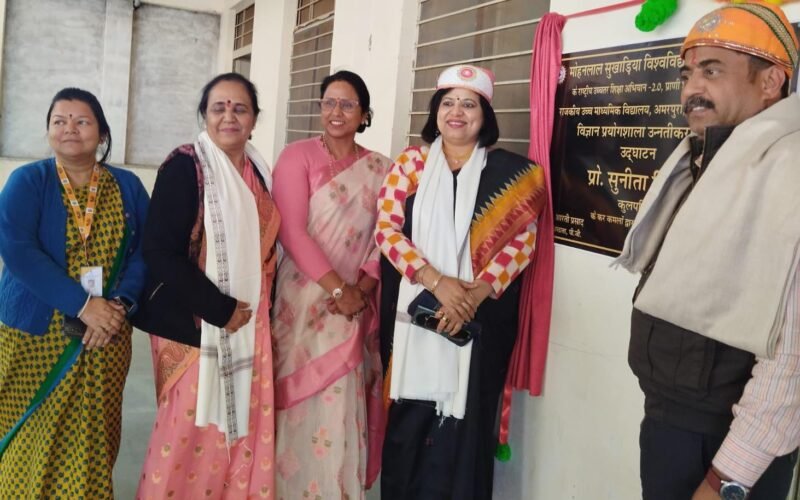 उदयपुर, 5 मार्च। मोहनलाल सुखाड़िया विश्वविद्यालय के कुलपति प्रोफेसर सुनीता मिश्रा ने जनजाति बाहुल्य क्षेत्र में अवस्थित राजकीय उच्च माध्यमिक विद्यालय अमरपुरा में प्रयोगशाला हेतु एक लाख रुपए से अधिक की प्रयोगशाला सामग्री एवं उपकरण भेंट किए। वहीं प्रयोगशाला का उद्घाटन किया।