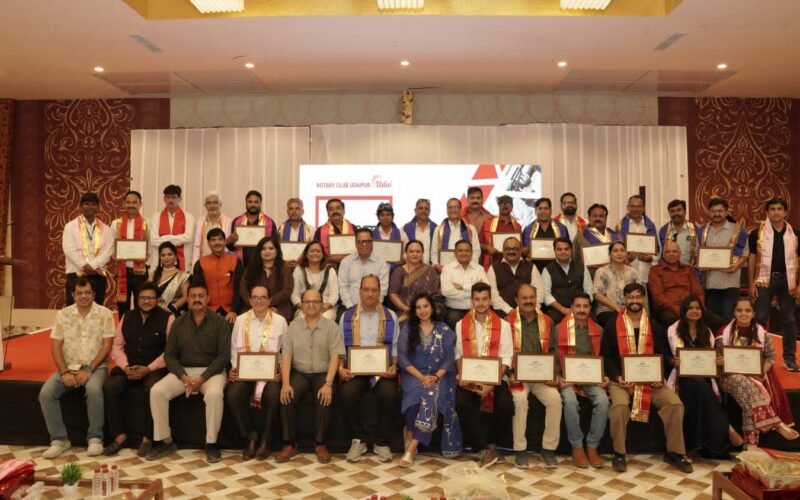 उदयपुर। रोटरी क्लब उदय द्वारा आज ओरियंटल पैलेस रिसोर्ट में वर्ष 2025-26 का वोकेशनल अवार्ड समारोह के तहत सूत्रधार के रूप में पत्रकार सम्मान समारोह आयोजित किया गया। समाज में बदलाव लानें, समााजिक एवं जनहित की समस्याओं को अपने संस्थान के माध्यम से उठा कर उनका समाधान निकालने में मुख्य भूमिका निभानंे वाले शहर के मीडिया संस्थान, प्रिन्ट, इलेक्ट्रोनिक एवं डिजिटल मीडिया से जुड़े 27 पत्रकारों का सम्मान किया गया। समारोह के मुख्य अतिथि सेवानिवृत्त मुख्य वन संरक्षक राहुल भटनागर,विशिष्ठ अतिथि सहायक प्रान्तपाल राजेश चुघ,क्लब सलाहकार डाॅ.सीमासिंह एवं नर्मदा फूड्स के निदेशक अनिकेत शर्मा थे।