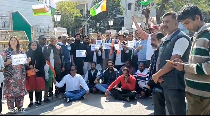 उदयपुर। 07 फरवरी। अमेरिका से भारतीय नागरिकों को अमानवीय तरीके से भारत भेजे जाने के विरोध में प्रदेश कांग्रेस कमेटी के निर्देशानुसार उदयपुर शहर जिला कांग्रेस कमेटी एवं उदयपुर देहात जिला कांग्रेस कमेटी ने संयुक्त रूप से केंद्र की मोदी सरकार के खिलाफ विरोध प्रदर्शन किया।